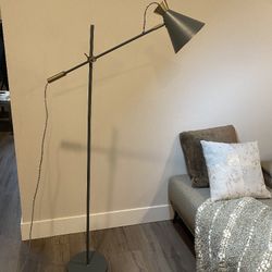 Elegant Floor Lamp With Adjustable Arm And Height In Dark Gray Metal Finish And Antique Bronze Accent $30Bellevue, WA