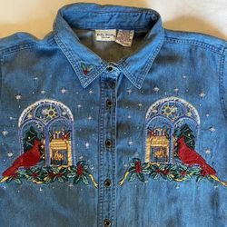 vintage 90s bobbie brooks denim button up / embroidered xmas cardinal scene$38Seattle, WA