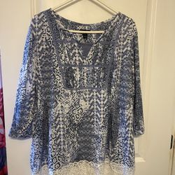 Women’s blue shirt with lace size 2X. $5. Everett/Pinehurst pick up area cash only sorry I do not ship.$5Everett, WA