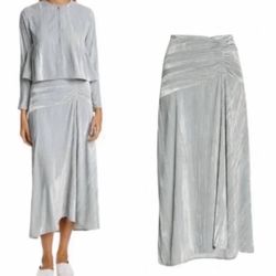 Vince Ruched Velvet Paneled Midi Skirt Pale Sea Glass Size 8 NWT $75Kirkland, WA