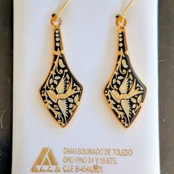 Damascene Gold Deltoid Bird Drop Earrings by Midas of Toledo Made In Spain 24k$75Kenmore, WA