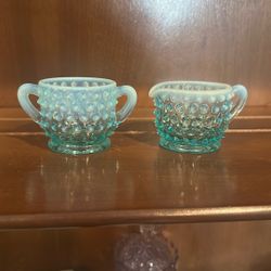 Fenton Blue Opalescent Hobnail Glass Mini Creamer And Sugar$40Burien, WA