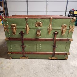 LONGSHORE & Leather Co Antique Steamer Trunk //W Painted Flag$280Bothell, WA