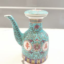 vintage Chinese Jingdezhen Mun Shou Famille Rose Longevity soy sauce jug or Wine Bottle $30Seattle, WA