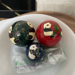 3 Vintage Chinese Baoding Balls Panda Bamboo Enamel Steel$15Stanwood, WA