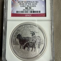 2015P 1oz NGC MS70 Australia Year Of The Goat Silver Coin $120Seattle, WA
