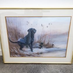 Vintage 90s Black Lab Signed Art Print – Brass Frame Cottagecore Hunting Dog Decor$100Seattle, WA