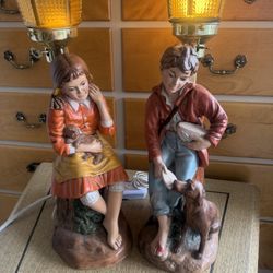 Hand Painted Holland Mold Lamps Girl/Boy And Dogs 1980$200Covington, WA