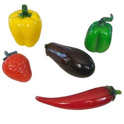 Set 5 Hand Blown Glass Art Fruit Vegetable Strawberry Red Yellow Pepper Eggplant$70Kirkland, WA