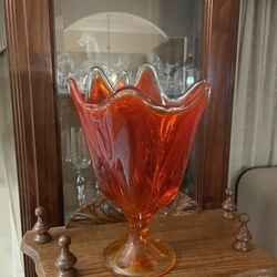 Viking Epic Swung Glass 10” Finger Handkerchief Pedestal Vase Persimmon Amberina$40Marysville, WA