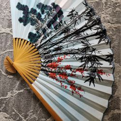 Vintage Large Hand Painted Asian Folding Wall Fan Cherry Tree and Horses 36x60"$50Everett, WA
