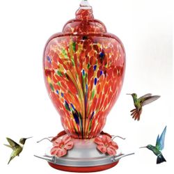 Hummingbird Feeder for Outdoors Patio Large 32 Ounces Colorful Hand Blown Glass Hummingbird Feeder with Ant Moat Hanging Hook, Rope, Brush and Service$20Bellevue, WA