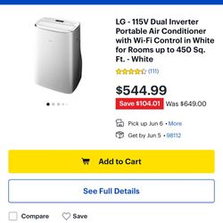 LG Portable Room Air Conditioner 115v 14,000 Cooling Capacity$350Seattle, WA