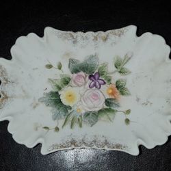 Vintage Hand-painted Lefton China Bisque Porcelain Floral Ashtray, Trinket Tray