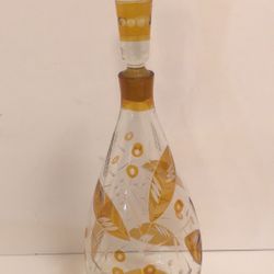 Bohemian Amber Glass 14 1/2”x 4 1/2” Vintage Mid Century Cabana Style Glass Carafe Decanter with Beautiful Etched leaf design in excellent condition. $85Issaquah, WA
