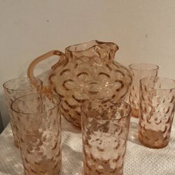 Vintage Fenton Thumbprint Rare Color Salmon Colored Pitcher And 5 Glasses $185Everett, WA
