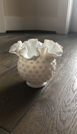 FENTON WHITE MILK GLASS HOBNAIL SMALL RUFFLED CRIMPED 4” VASE$15Seattle, WA
