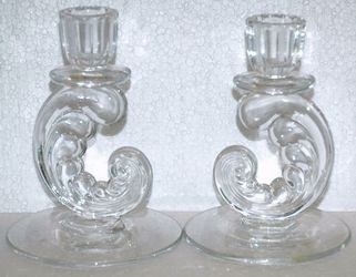 Pair Crystal Clear Glass Candlesticks Swirl Wave Pattern Fostoria$15Seattle, WA