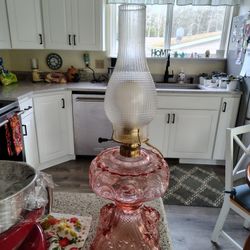 Vintage Rose Glass Oil Lamp Hurricane Style, square base$70Snohomish, WA