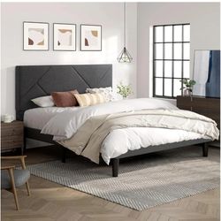 Full Size Upholstered Bed Frame with Geometric Headboard, Heavy-Duty Platform Bed, No Box Spring Needed, Dark Grey,Modern Style$120Seattle, WA