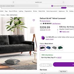 Everly Quinn 58.46” Velvet Loveseat-Black $190Seattle, WA