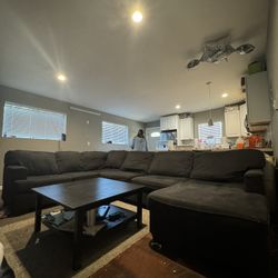 COSTCO charcoal Black Linen Sectional Couch And Ottoman $800Seattle, WA