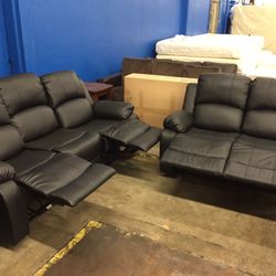 Black Leather Fully Reclining Sofa And Love Seat $1,200Seattle, WA