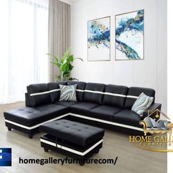 Black Faux Leather 3-Piece Couch Living Room Sofa Set including storage ottoman sectional sofa, brand new$630Seatac, WA