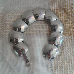 Vintage Silver Hammered Bracelet, Brutalist hammered Square Panel Silver Bracelet$60Renton, WA