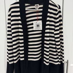 NWT Anne Klein Black and White Striped Cardigan, Pockets, Women’s Small$25Renton, WA