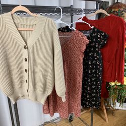 One Tan Cardigan, Two Floral Tops, And One Red Button Down Sweater With Pockets$25Marysville, WA