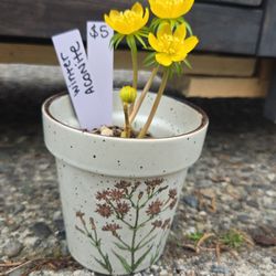 Small Floral Ceramic Pot With Winter Aconite Plant$5Redmond, WA