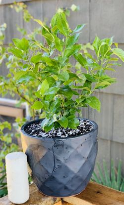 Live outdoor Eureka Lemon Tree plant in a textured Le Beau ceramic planter pot—firm price$75Seattle, WA