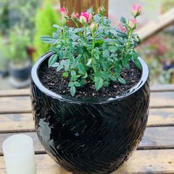 Live outdoor rose 🌹 bush plant in a ceramic planter pot—firm price$60Seattle, WA