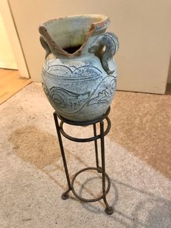 Unique ceramic vase / pot with metal stand$25Issaquah, WA