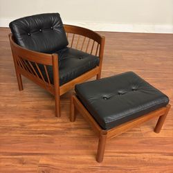 Danish Teak & Leather Barrel Chair & Ottoman - Many More Items In Stock!$2,495Renton, WA