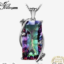 JewelryPalace Oval Rainbow Fire Mystic Quartz 925 Sterling Silver Pendant [PEN85]$20Everett, WA