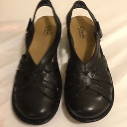 Clarks Bendable Ina charm Black Leather Slingback Sandals Adjustable $40Issaquah, WA