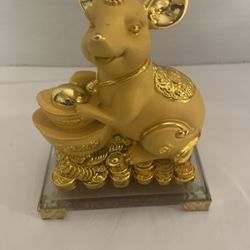 Feng Shui Gold Chinese Zodiac Happy Rat Pot Gold Statue Figurine Home Office$30Port Orchard, WA