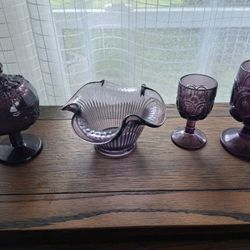 Lot Of Four Vintage Amethyst Purple Glass Pieces $60Kenmore, WA