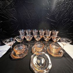 Vintage 1930S Era, Pink Depression Glass 19 Etched Floral Style Stemware, And Tea Cups$79Mukilteo, WA