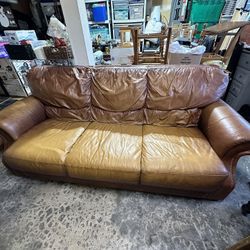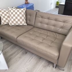 Beige/Brown Leather Sofa with Metal Legs$600Seattle, WA