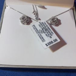 Bridge Diamond And Silver Earrings And Necklace Set $150Silverdale, WA