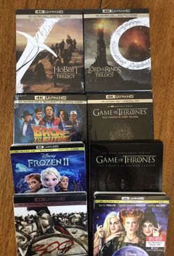 4k Game of Thrones 1 and 8, Blu-Ray NEW, Disney marvel Harry Potter DC movies 3D Bluray and dvd collector’s$45Everett, WA