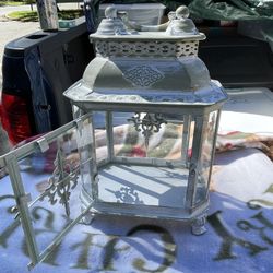 This is a beautiful vintage-style metal and glass lantern with a distressed finish, perfect for adding a touch of shabby-chic or farmhouse style to an$10Shoreline, WA