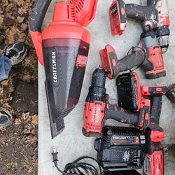Craftsman 20 Volt Set Vacuum Cleaner Two Drills Impact Flashlight Two Batteries Charger Bt1.2,3 No Offers No Trades Prices Firm$95Shoreline, WA