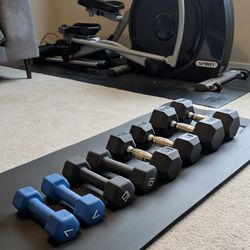 Hex Dumbbell Set (7-25 lb pairs) + Thick Exercise Mat – $50$50Bothell, WA