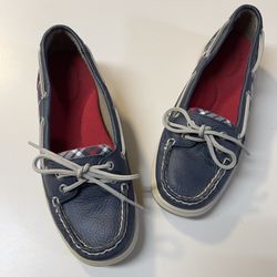 SPERRY Top sider Navy Blue Leather Red plaid Trim Women flat Shoes Size 6$25Covington, WA