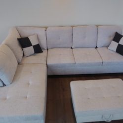 Light Grey Linen Sectional Couch And Ottoman $700Seattle, WA