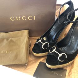Gucci Black Suede Wedge platform With gold bit $400Edmonds, WA